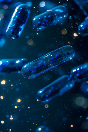 floating blue capsules with sparkling effect. High quality photo