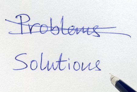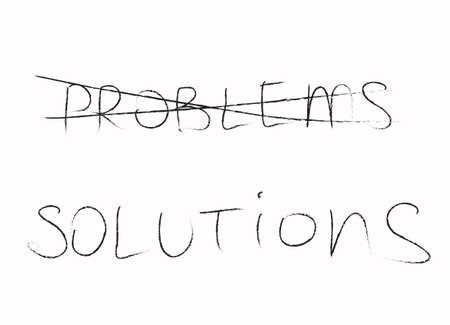 Problems and Solutions word on wooden table