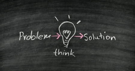 Problem solution think phrase written with a typewriter.
