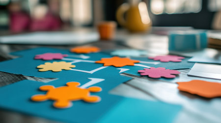 A captivating scene featuring colorful cut-out shapes on a table, perfect for arts and crafts projects, enhancing creativity in a bright and engaging environment.