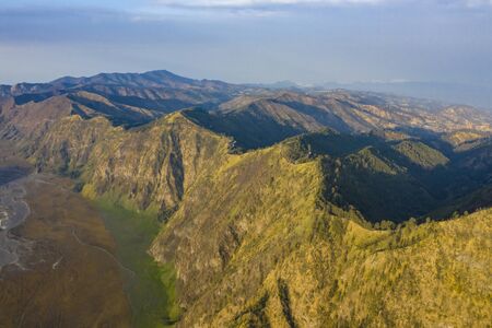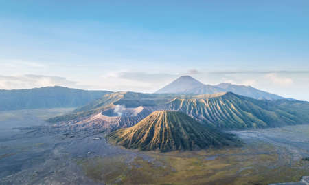 Aerial view Mountains at Bromo volcano during sunrise sky,Beautiful Mountains Penanjakan in Bromo Tengger Semeru National Park,East Java,Indonesia.Nature landscape background