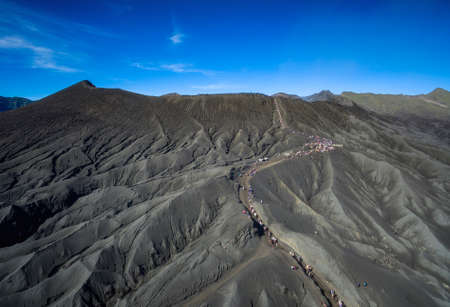 JAVA - INDONESIA, April 22 : tourist riding horse walking up to Bromo volcano crater ,Java Indonesia, April 22,2015