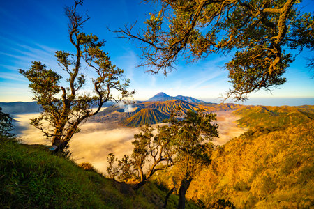 Beautiful sunrise at Mount Bromo , the active volcano in Bromo Tengger Semeru National Park, East Java, Indonesia.