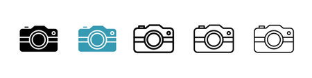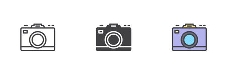 Simple digital camera different style icon set. Line, glyph and filled outline colorful version, outline and filled vector sign. Symbol, logo illustration. Vector graphics