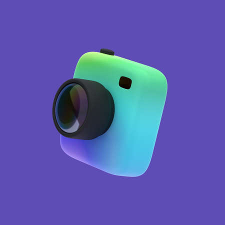3d simple rainbow snapshot camera with lens on pastel background with clear shadow. Isolated hight quality 3d illustration.