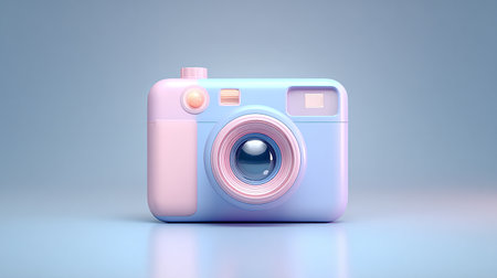A stylish vintage film camera is set against a pastel background with a soft gradient of pink and blue, evoking a sense of nostalgia and classic photography.