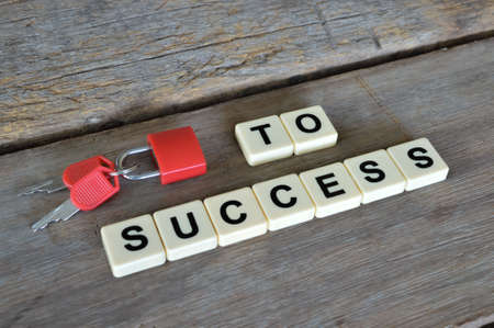 Keys, padlock and square letters with text TO SUCCESS.