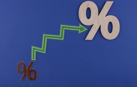 arrows with percentage sign going up, concept of business growth, finance and income increase