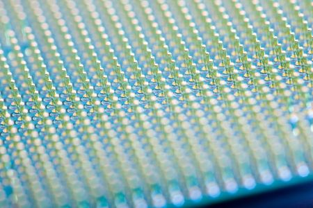 CPU processor pins up in blue light close-up