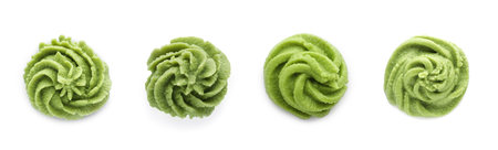 Wasabi Smear Isolated, Green Sushi Paste, Wasabi Paste Smear on White Background Top View