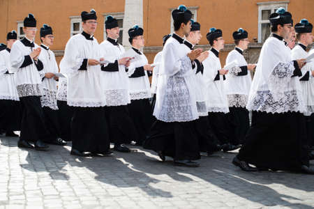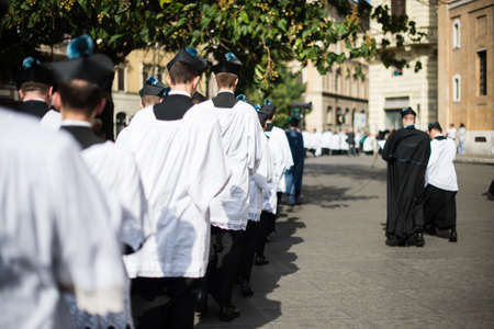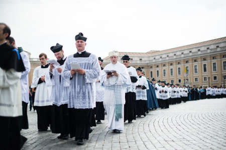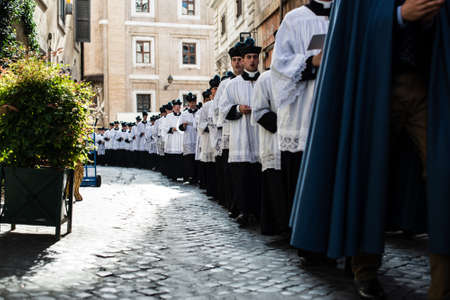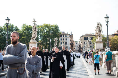 ROME-ITALY-24 10 2015, religious procession through the streets of Rome and the Vatican priests, nuns and monks praying to walk the stalls of Roma, Pilgrimage Summorum Pontificum of 2015