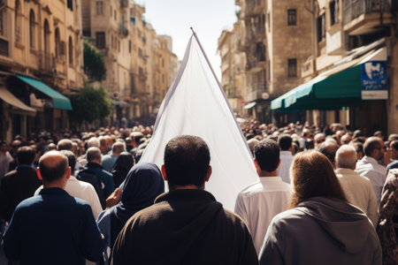 illustration of Arab crowd with white flags on .Generative AI.