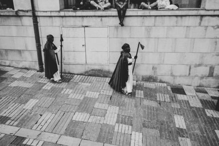 Zamora, Spain - April 7, 2023: People dressed in traditional Easter costumes during the Holy Week processions
