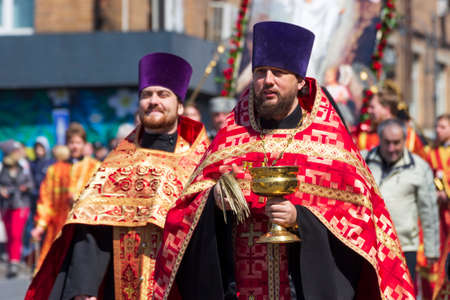 Vladivostok, Russia - April, 08, 2018: A priest of the Russian Orthodox Church during the procession on Easter.
