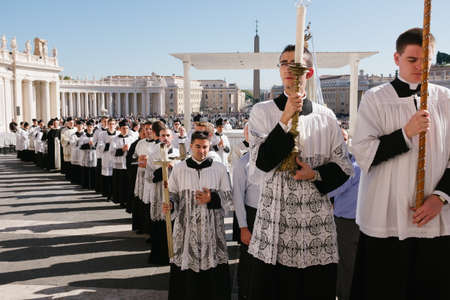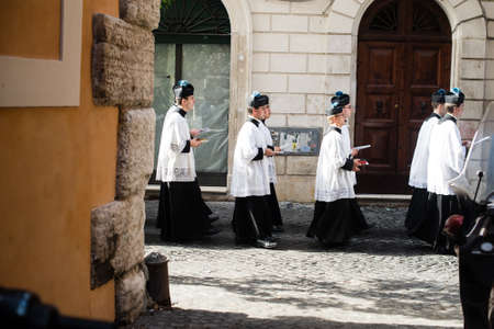 ROME-ITALY-24 10 2015, religious procession through the streets of Rome and the Vatican priests, nuns and monks praying to walk the stalls of Roma, Pilgrimage Summorum Pontificum of 2015