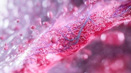 This image showcases a detailed, digital rendering of a blood vessel's interior. It features a central red core, likely representing blood, surrounded by a blue-toned structure. The composition is close-up and macro, with soft lighting and a blurred background. It is suitable for medical presentations, educational materials, or scientific illustrations.