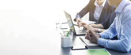 Close-up view of successful business team planing their strategy together in modern office room