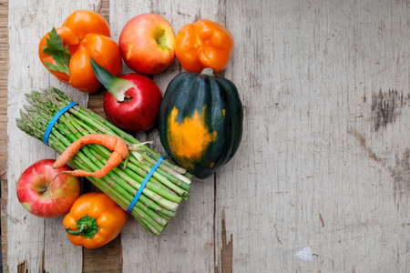 Close up of composition fresh seasonal vegetables