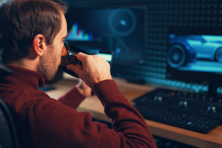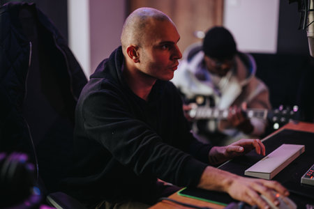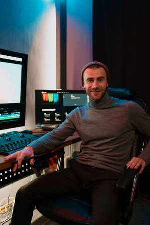 Sound producer working in recording studio.