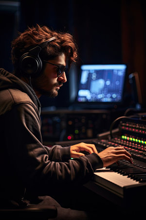 close-up of music producer focused on work