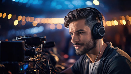 Sound engineer's skillful portrait professional backdrop vibrant color emphasis