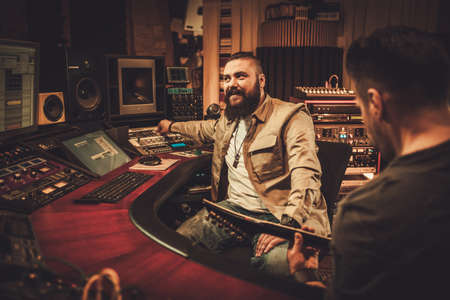 Guys working in boutique recording studio