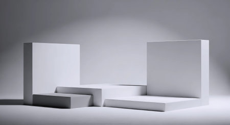 3D rendering of pedestal podium, Abstract minimal display empty space. Geometry podium for beauty cosmetic products or showcase.