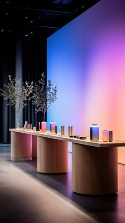 A well-lit product display with a gradient background and minimalist design.