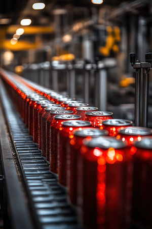 This image captures the efficient production line in a modern manufacturing facility, highlighting the automated can production process and workplace dynamics.