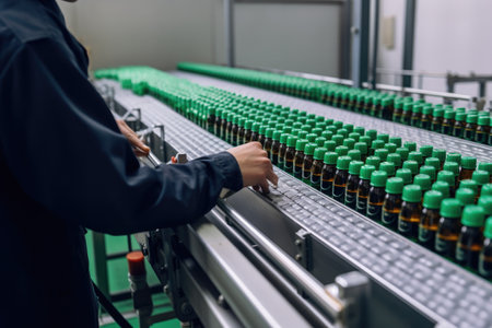 Production line of the factory for the production of alcoholic beverages. Industrial background, man working on factory, AI Generated