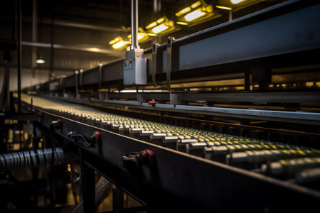 An intriguing view of a high-tech assembly line with glowing machinery and automated systems working efficiently in a modern factory setting