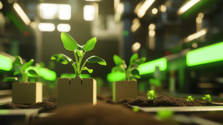 Futuristic Biotech Lab Growing Plants Indoors