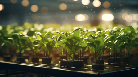 Fresh organic plant growth in modern greenhouse techno professional photography