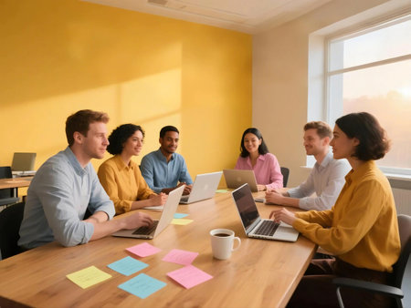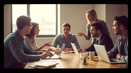 Collaborative team meeting at office brainstorming ideas modern workspace creative environment professional viewpoint