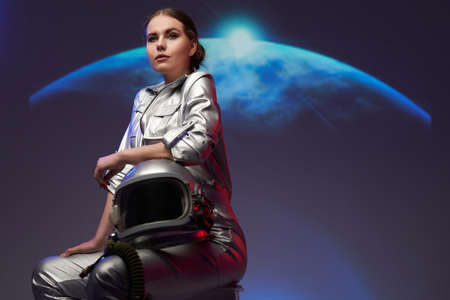 Cinematic image of an astronaut. Colorful portrait of a man with spacesuit