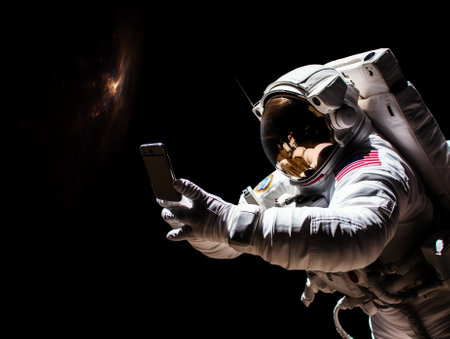 Generative AI : Astronaut in the outer space Astronaut makes selfie The elements of this image furnished by NASA
