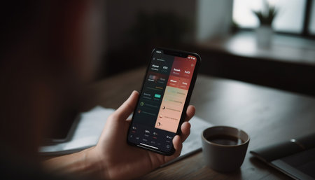 Efficient Office Productivity: Augmented Reality View of Smart Phone Displaying Charts and Reports on Work Desk