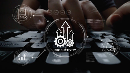 Productivity improvement in digital business, showing productivity tools, productivity tracking, productivity optimization, and workflow for business workplace efficiency.