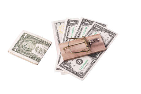 money on mousetrap on white