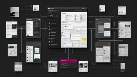A modern tablet screen displays a detailed digital interface design highlighting data flow and user experience. Soft ambient lighting sets a creative workspace atmosphere.