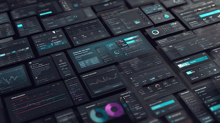 Explore a high-tech user interface featuring a digital dashboard with various metrics and analytics. Perfect for technology themes and futuristic concepts.