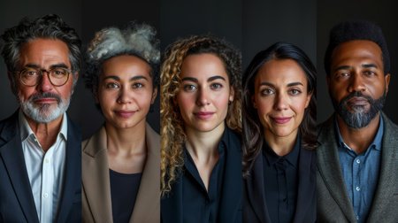 Collage of portraits of an ethnically diverse and mixed age group of focused business professionals