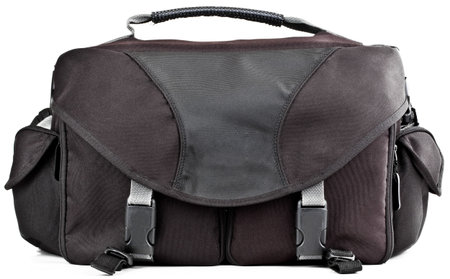Abstract picture of black fabric travel bag with gray plastic zippers