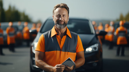 Portrait of Truck Driver in Front Truck extreme closeup. Generative AI