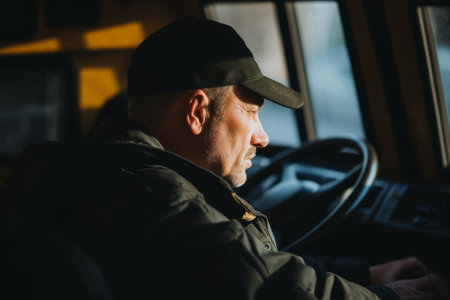 Truck driver behind the wheel