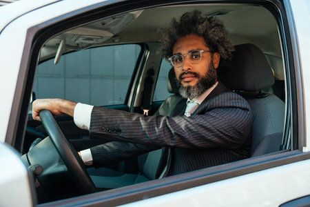 driver in his suit driving luxurious car