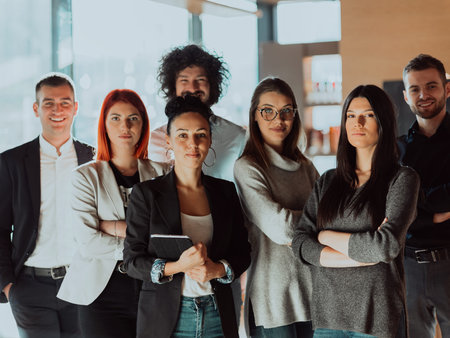 portrait of bold and outgoing group of successful business people, looking at camera. eye contact