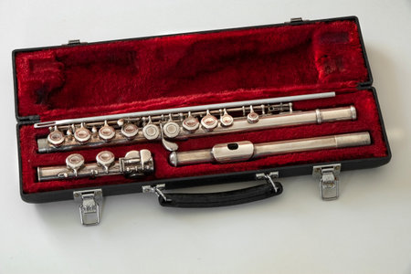 Flute, musical instrument in velvet padded case