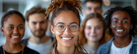 A collaborative and inclusive team of young professionals thriving in a contemporary workplace. Concept Adaptive Work Environment, Empowered Collaboration, Innovation Culture, Inclusive Diversity