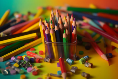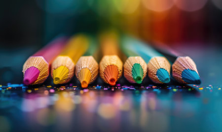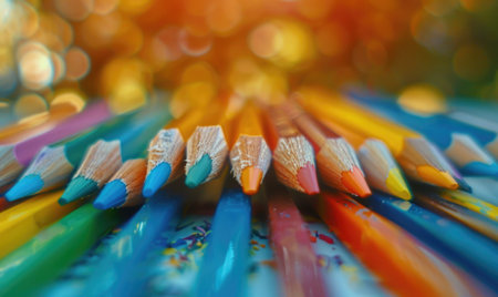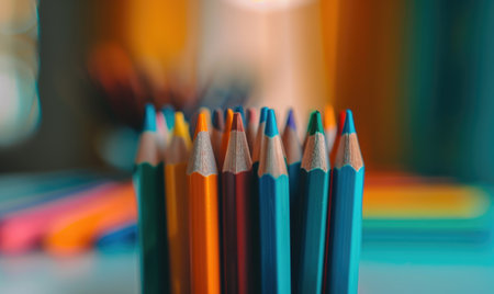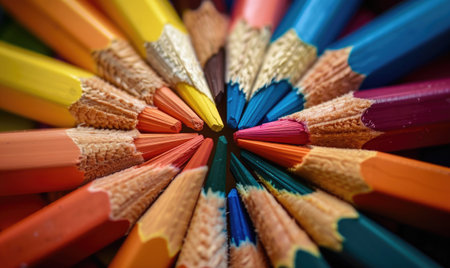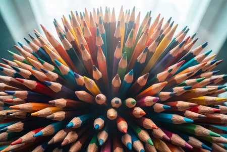 Bunch of colored pencils are showing their sharpened tips, creating a colorful and vibrant design